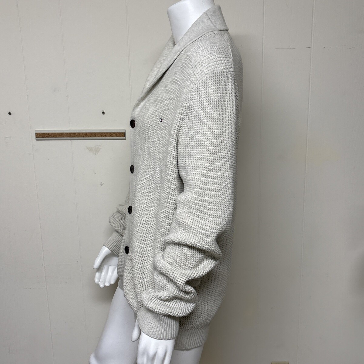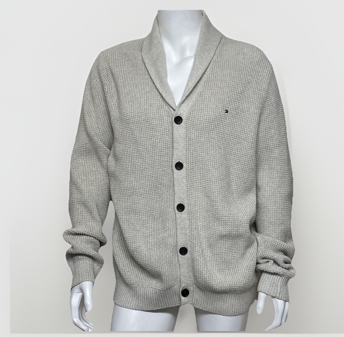 Tommy Hilfiger Cardigan Chunky Waffle Knit Mens XXL Beige 100% Cotton Button