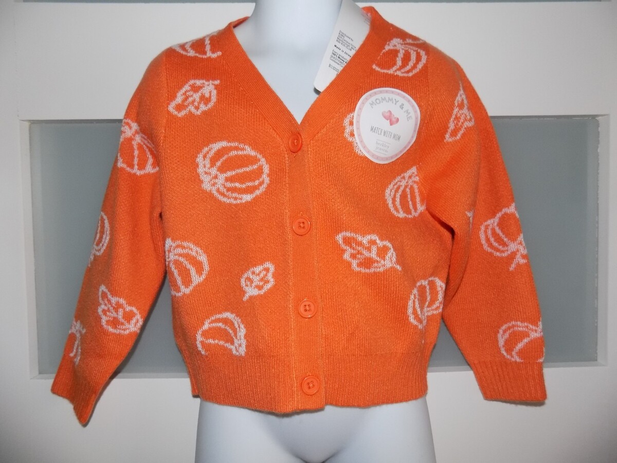 Berkley Jensen Mommy & Me Orange Pumpkin Print Cardigan Size 3T Girl's NEW
