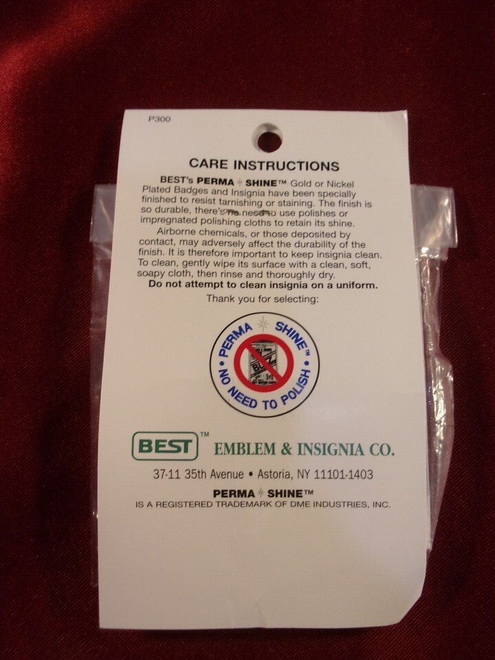 NEVER BUY YOUR INSIGNIAS THAT ARE OUTSIDE A SEALED PACKAGE, THIS INSIGNIA IS GAURANTEED TO NOT HAVE SCRATCHES OR FINGERPRINTS. IT IS SEALED INSIDE THE ORIGINAL PACKAGE.