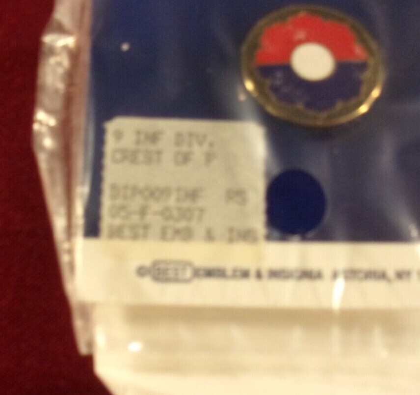 NEW BEST EMBLEM INSIGNIA CO. 9TH INFANTRY DIVISION CREST PIN SI 1219
