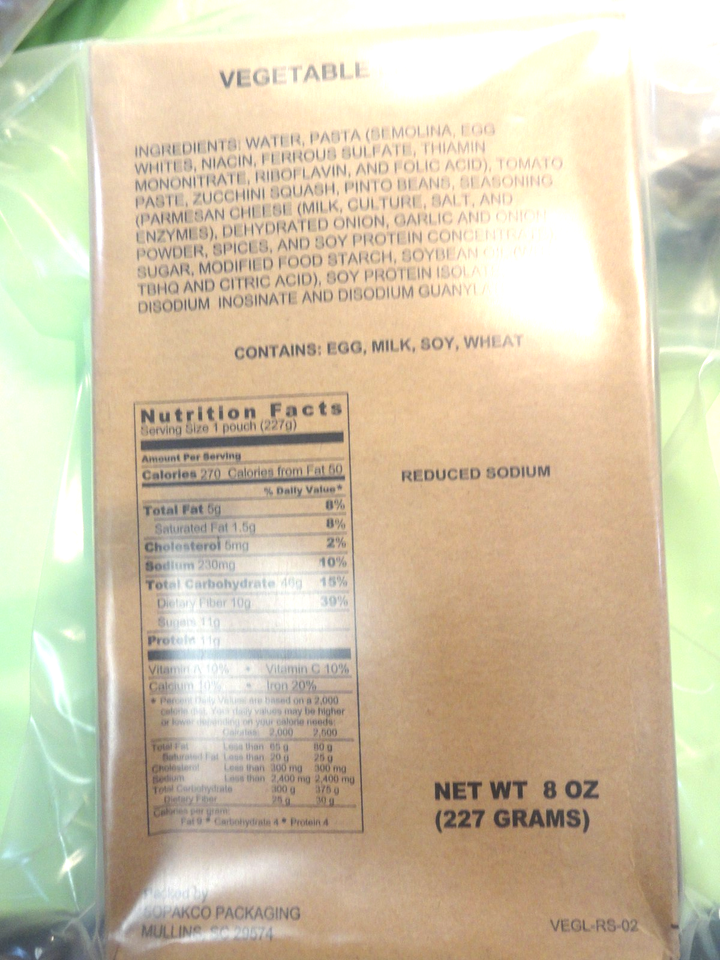 3 QTY PREPPER SURVIVAL MEAL READY TO EAT MRE VEGETABLE LASAGNA, SPAGHETTI, PENNE
