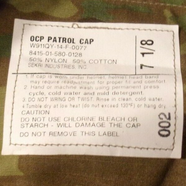 NWOT USGI US MILITARY U.S. ARMY MULTICAM OCP PATROL CAP SIZE 7 1/8 RL 6