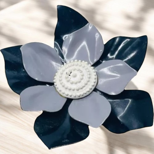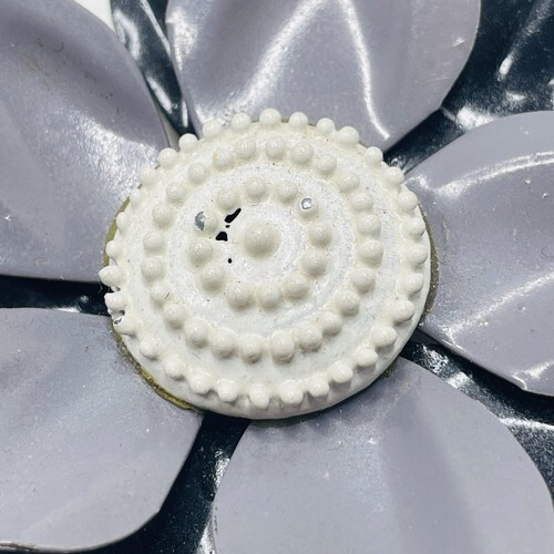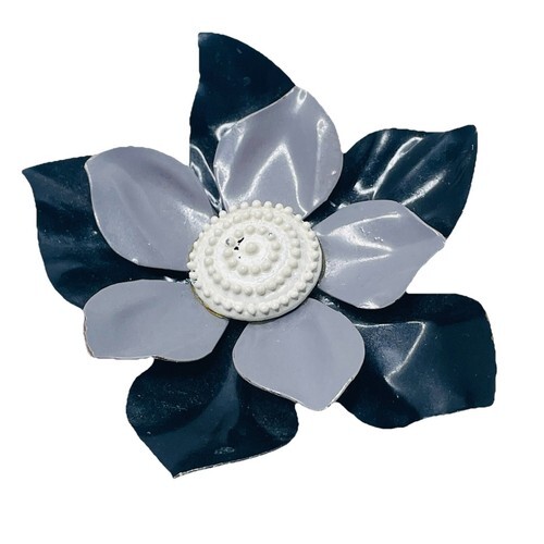 FLOWER POWER Brooch Pin Retro MOD Metal Enamel White Gray Black 1960s