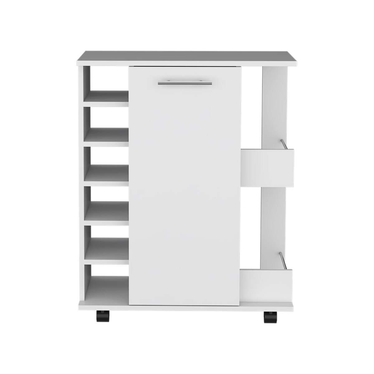 The built-in 6-wine bottle rack stylishly organizes and showcases your vino collection, making it an ideal solution for wine enthusiasts.