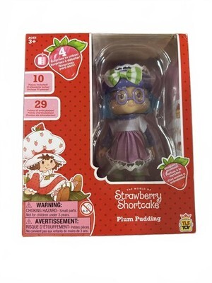 This collectible Plum Pudding doll from The World of Strawberry Shortcake features 4 surprises to unwrap, including 10 pieces and 29 points of articulation for interactive play. Suitable for ages 3 and up. Comes in original packaging with clear display window.