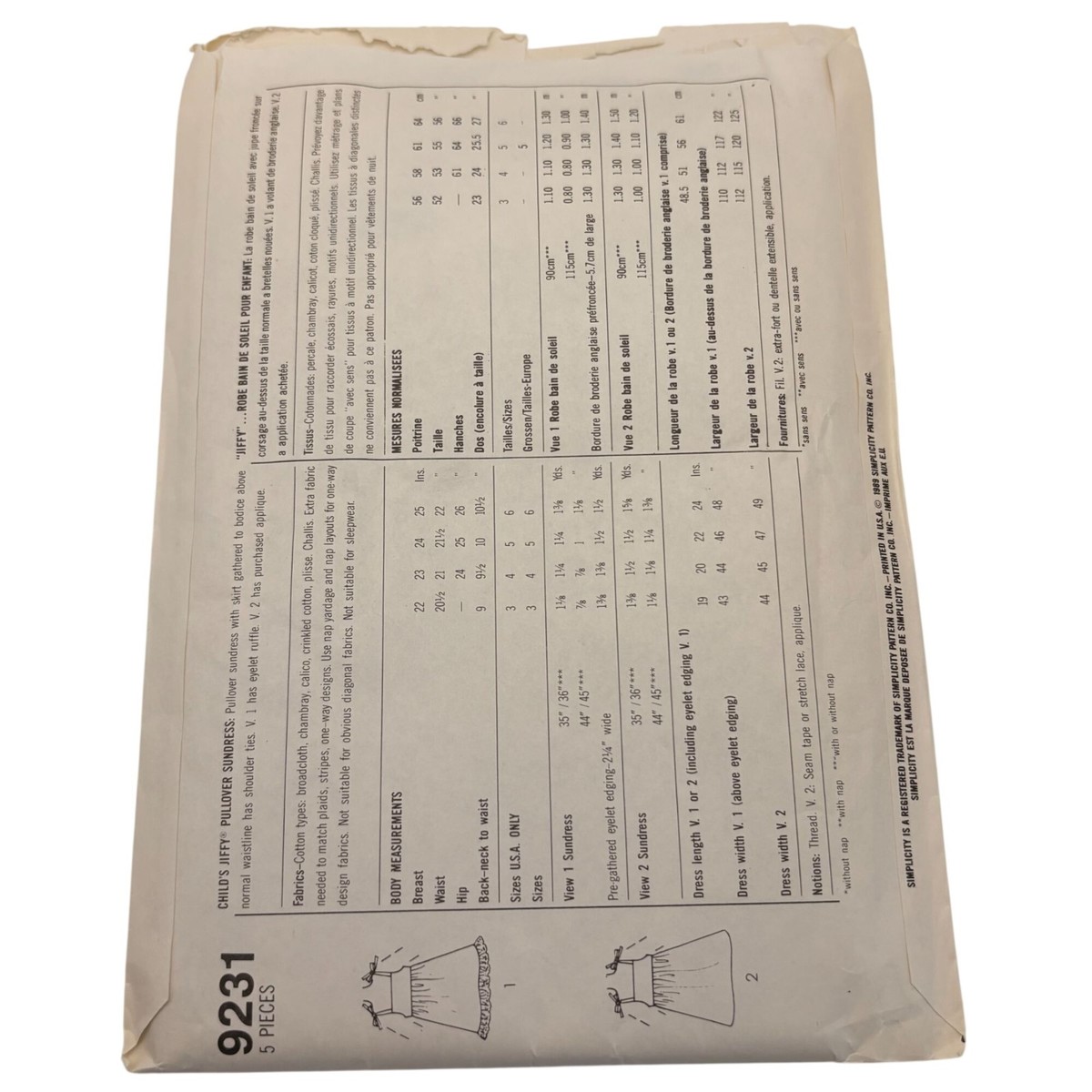 Simplicity 9231 Jiffy Girls Dress Sewing Pattern Size 5 Vintage 1980s