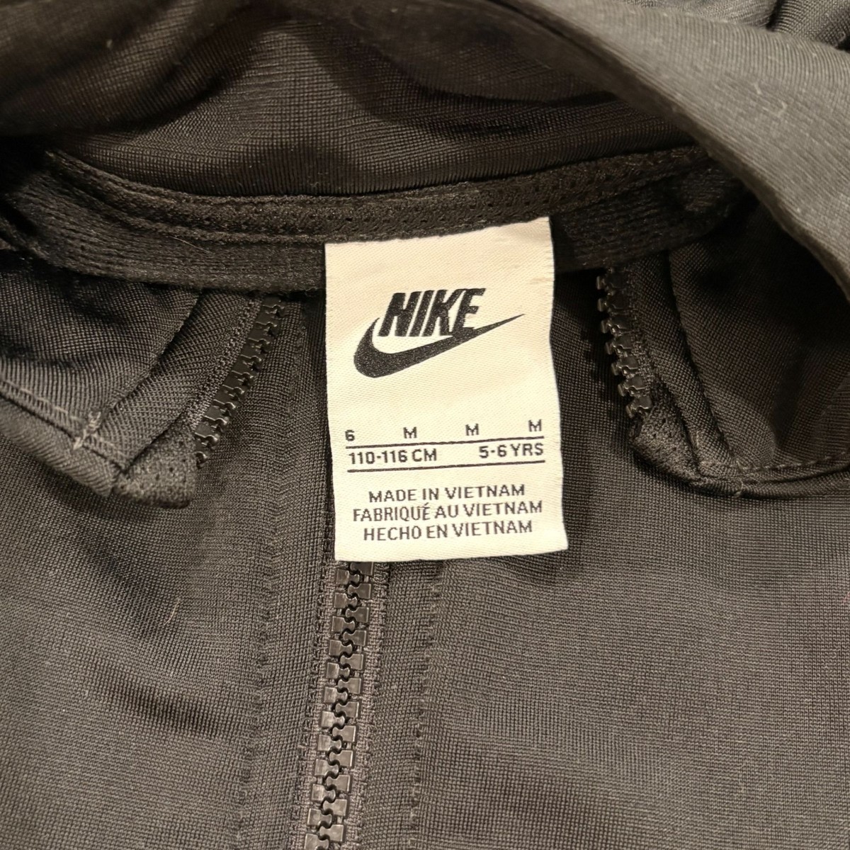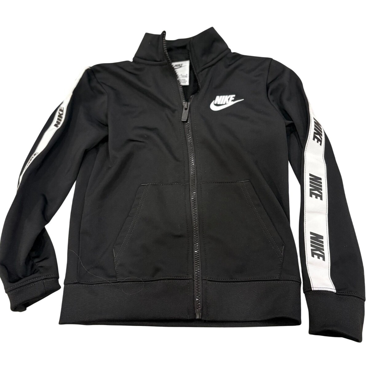 Nike Kids Black Full Zip Track Jacket White Logo Stripes On Sleeves 5-6