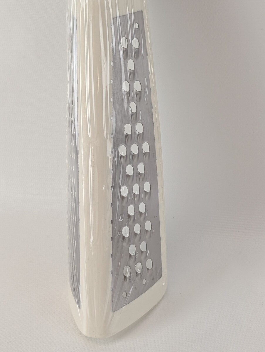 Grate cheese, vegetables, and more efficiently with the IKEA Space Saver Grater. Made from durable stainless steel with a comfortable handle, this grater is designed for everyday kitchen use while saving space when stored.