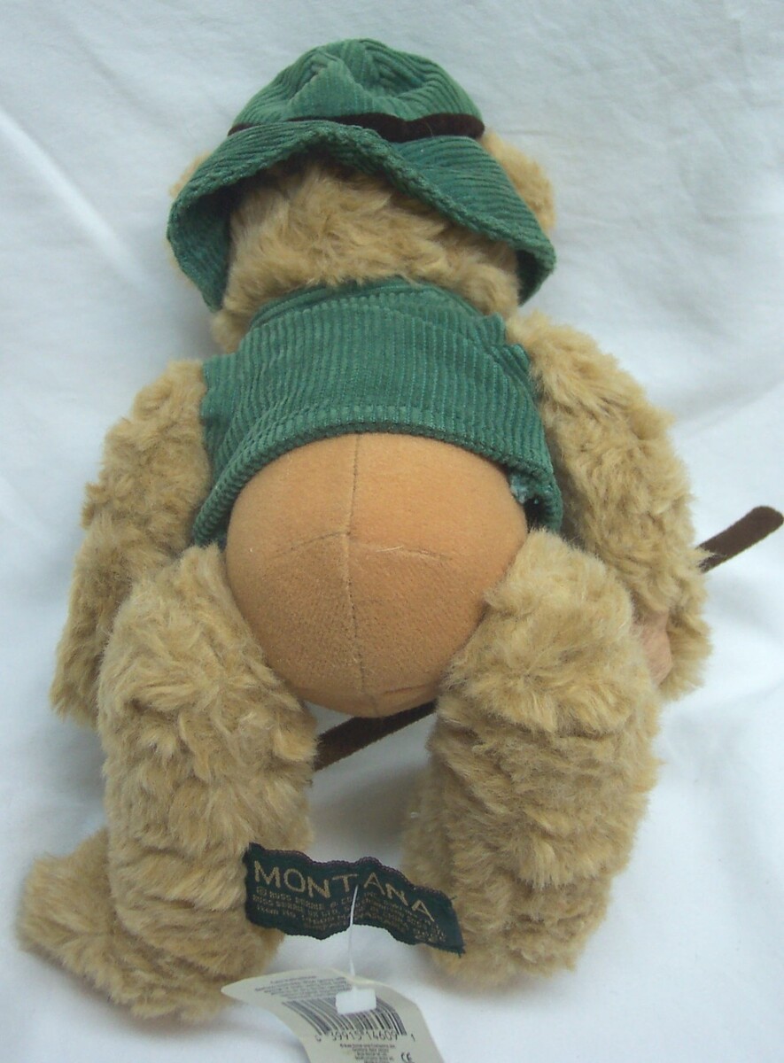 This is a MONTANA THE TEDDY BEAR HIKER Plush Stuffed Animal TOY. Made by Russ. It is 7 inches tall in sitting position. It is in Great Condition with the original tag but tag has creases. It is CLEAN. There are No Stains, Tears or Defects. Combine auctions to save on shipping. Please contact me if you need to make other payment arrangements. EAG o