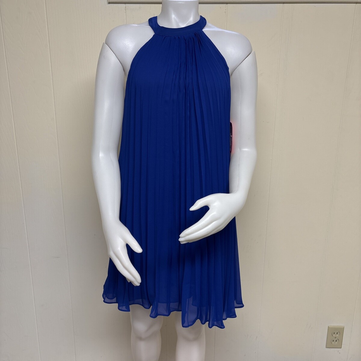Vintage Y2K Betsey Johnson Halter Dress Womens 4 Royal Blue Pleated Mini Aline