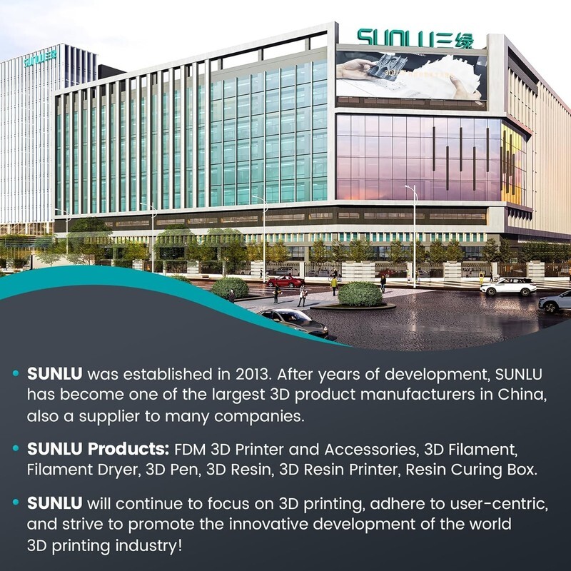 ??SUNLU Main 3D Products?SUNLU offers a wide range of high-quality 3D printing products, including 3D printer filament, filament dryer, FDM 3D printer, 3D pen, 3D pen filament, 3D printer resin, LCD 3D printer, resin curing box, and other accessories, providing you with everything you need for a successful 3D printing experience.