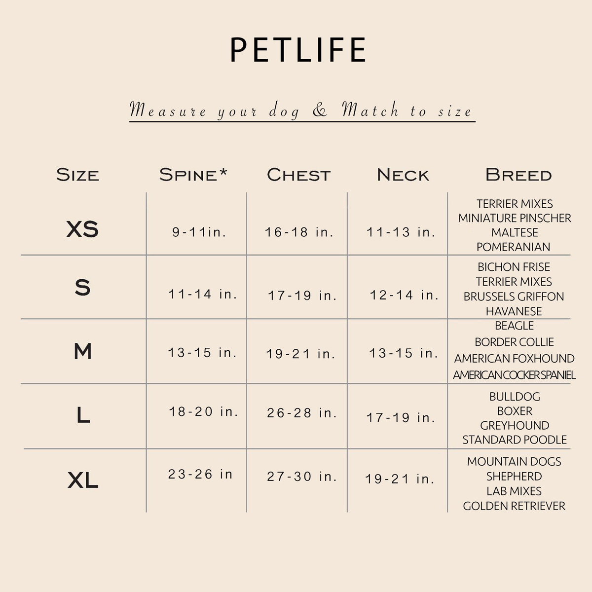 SIZING SPECIFICATIONS: In (Inches) "Back" Length is from Neck to Tail: * See image chart for sizing approximation.