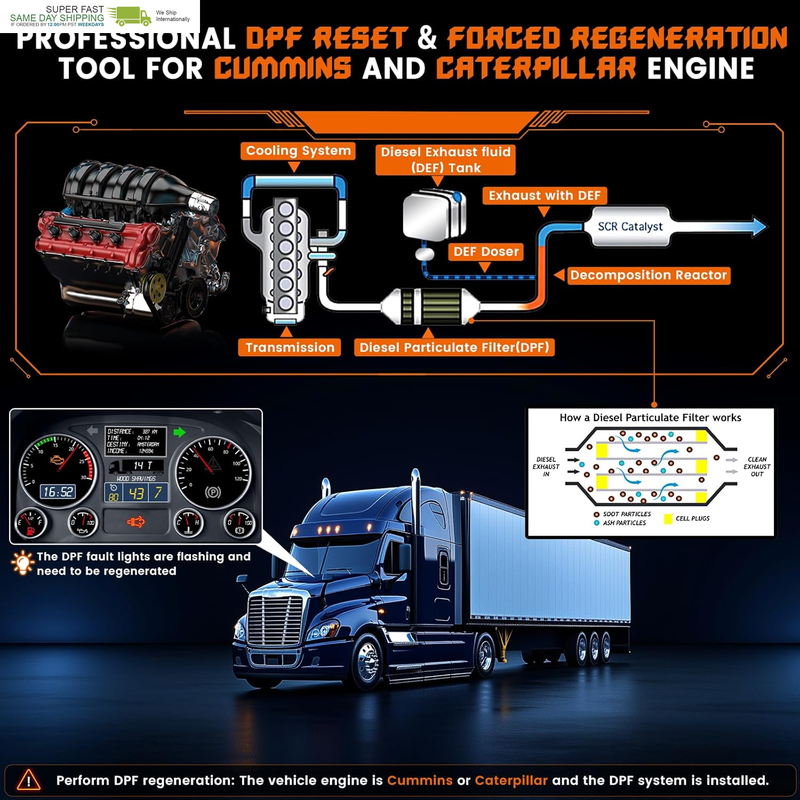 Help heavy truck d-p-f removing accumulated diesel particles, thereby maintaining engine performance fuel efficiency, extending D-P-F service life, avoiding fault codes caused by D-P-F blockage, and ensuring that exhaust emissions meet environmental standards.