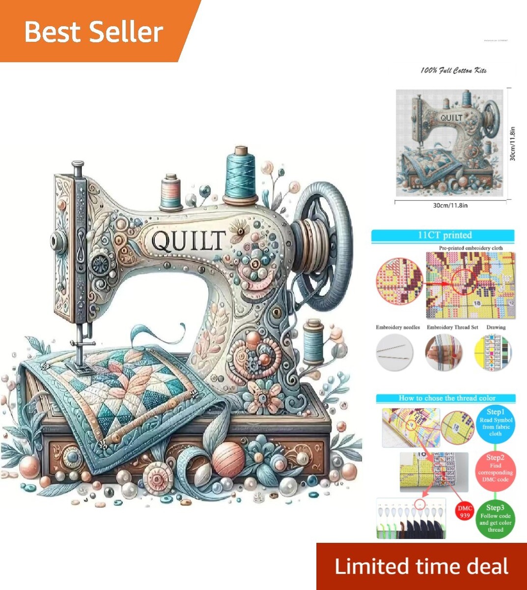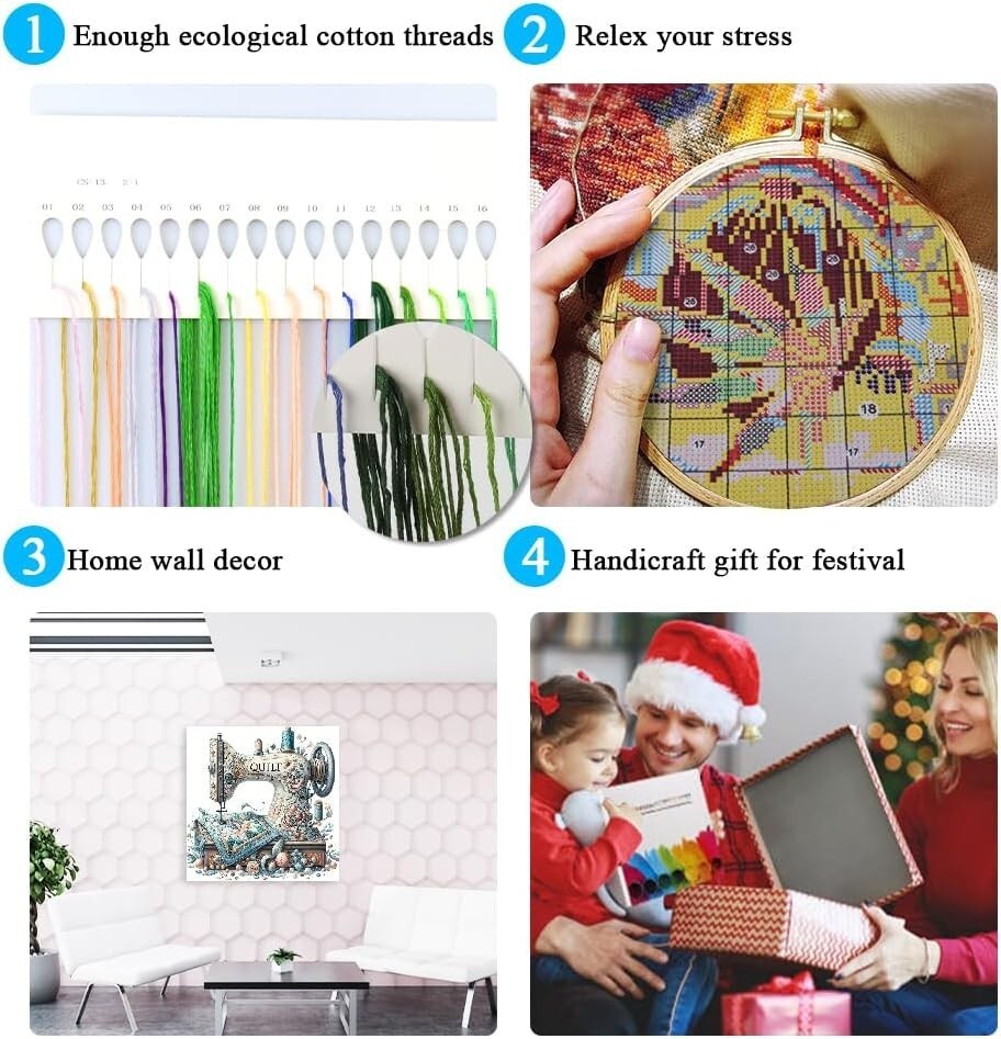 Indulge in the elegance of crafting with our 13.7x13.7 Cross Stitch Kit. This exquisite vintage sewing machine design not only enhances your creative journey but also adds a touch of artistic charm to any space. With high-quality materials crafted for both beginners and seasoned crafters, this kit promises precision, ease, and delightful results. Transform your artistic expression today?join the world of sewing and create a cherished masterpiece!