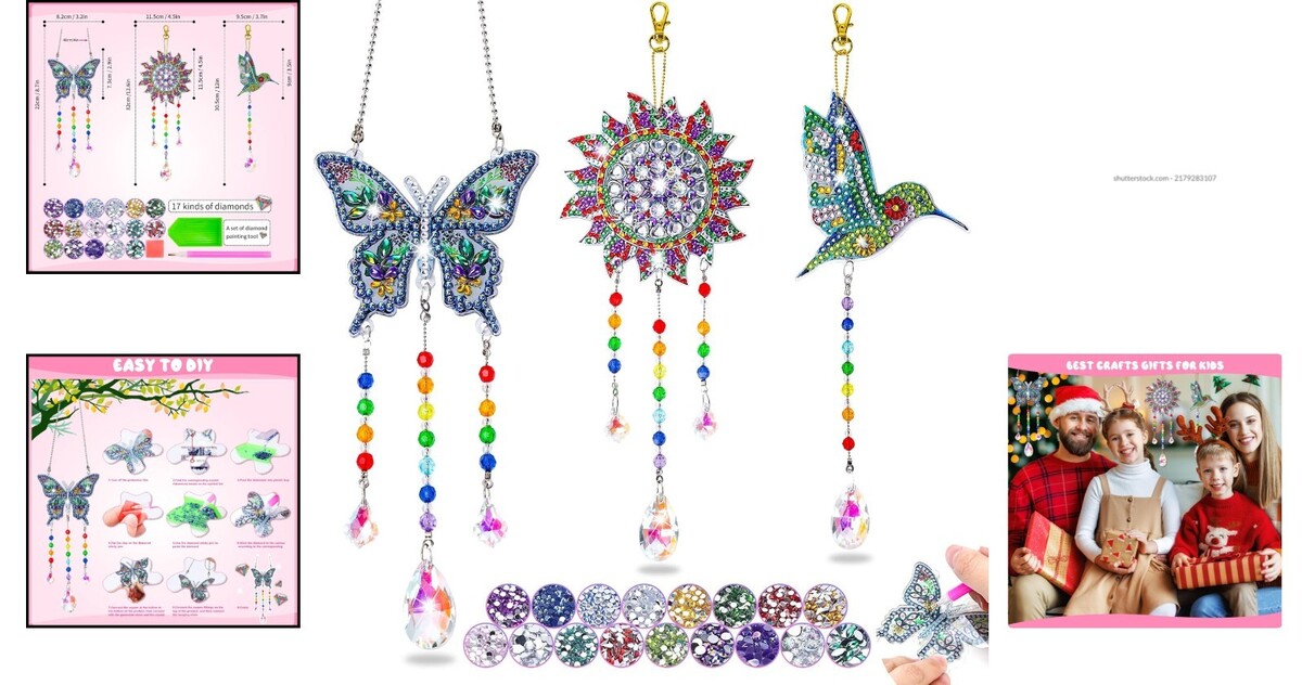 Perfect creative craft gift for children aged 6-12 , combining diamond painting, wind chimes, and suncatcher.