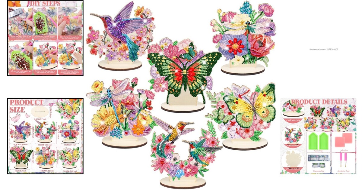Elegant 6 Pcs Butterfly & Hummingbird Diamond Art Set for Tabletop Beauty