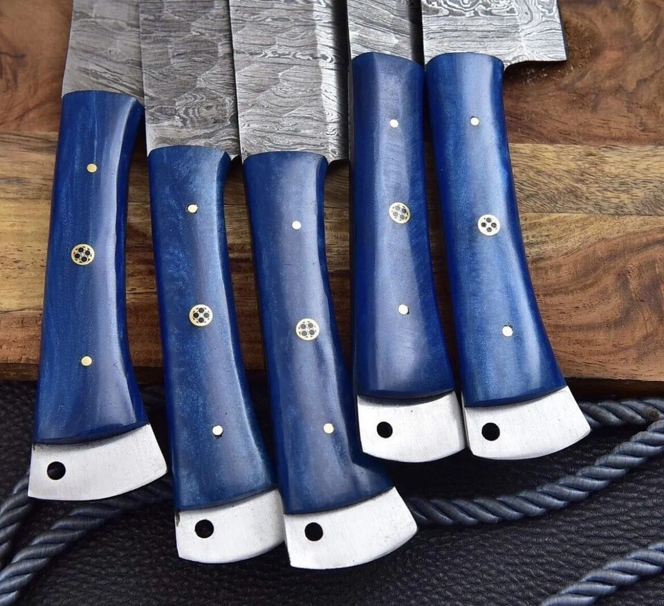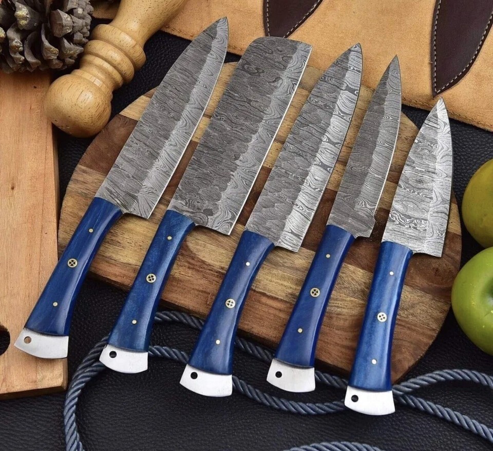 CUSTOM MADE HAND FORGED DAMASCUS STEEL CHEF KITCHEN KNIFE SET