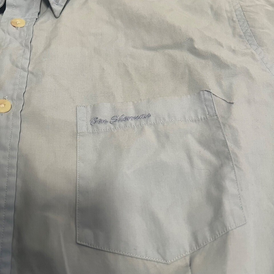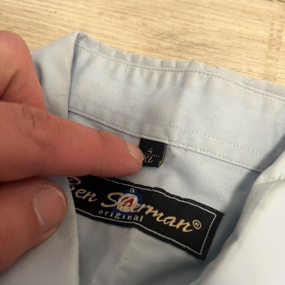 Ben Sherman Button Down Shirt Short Sleeve Light Blue XL Mens Vtg Punk Oi! GBh