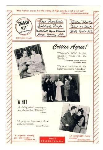 Soldier's Wife Ad Flyer Golden Theatre New York 1944 Rose Franklin Smash Comedy