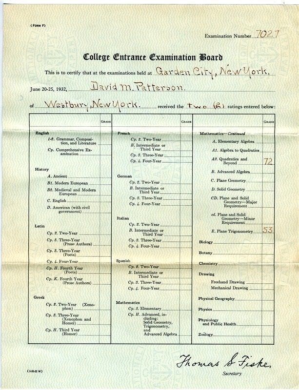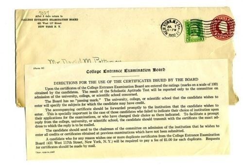 1932 College Entrance Examination Board Certificate + Envelope + Directions