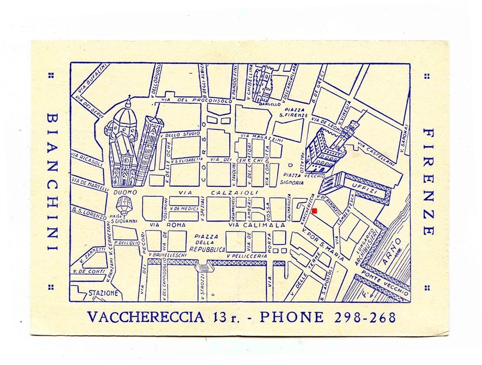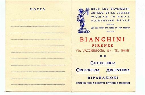 Bianchini Gold & Silversmith Business Card Firenze Italy with Map