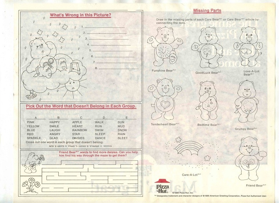 Pizza Hut Makin It Great Placemat Bear and similar items
