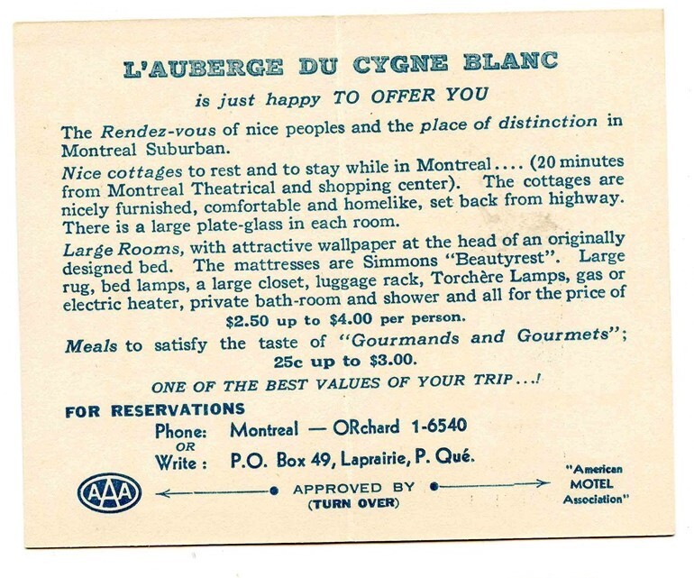 L' Auberge du Cygne Blanc Hotel Invitation Montreal Quebec Canada White Swan Inn