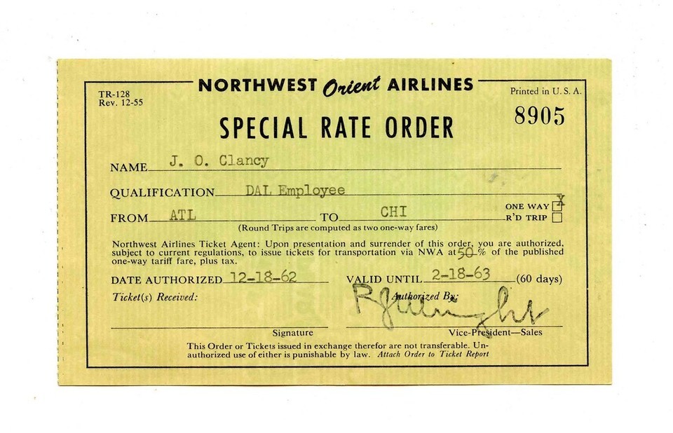 Northwest Orient Airlines Special Rate Order and similar items