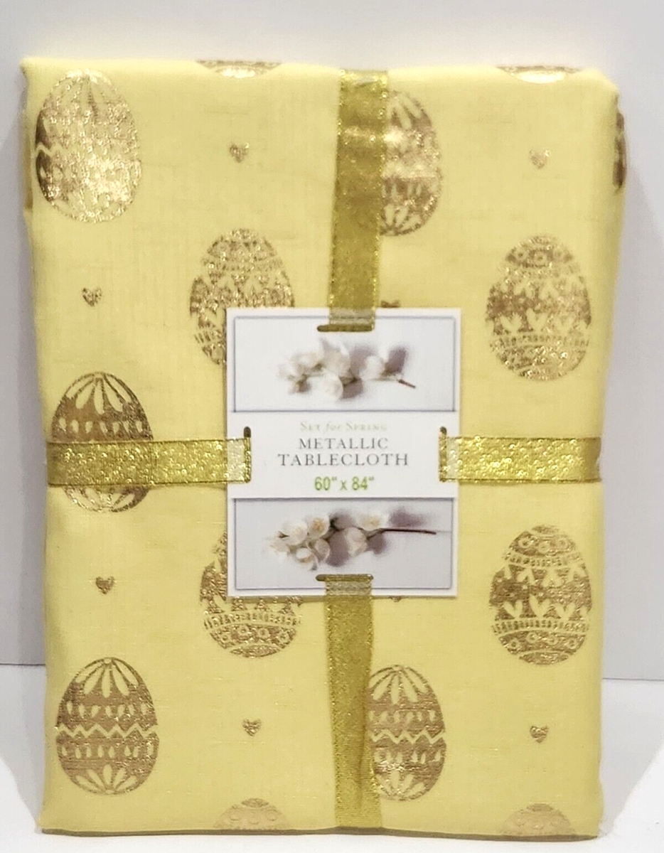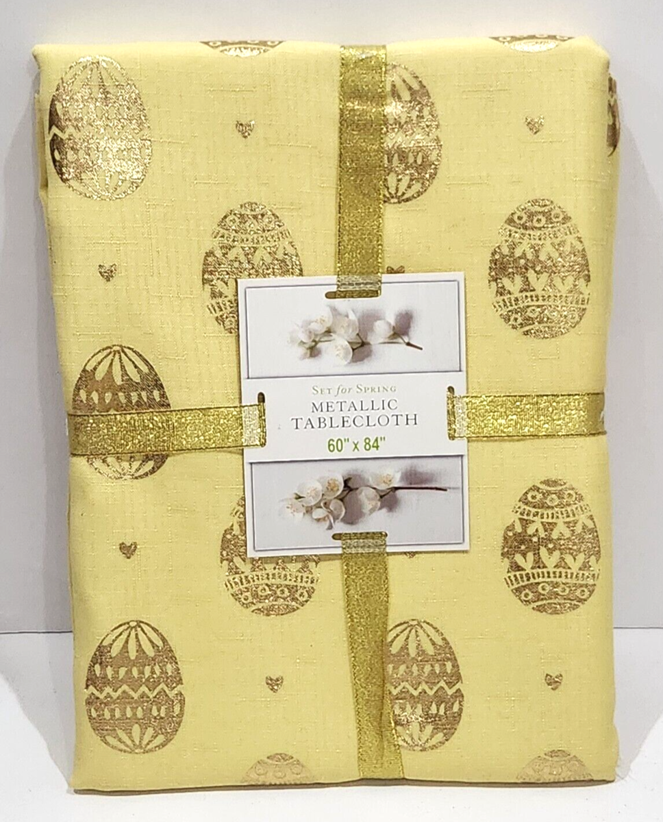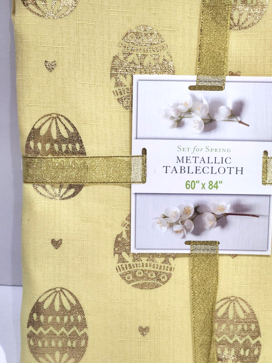 Easter Yellow Gold Mettalic Egg Fabric Tablecloth Home Decor 60" x 84"