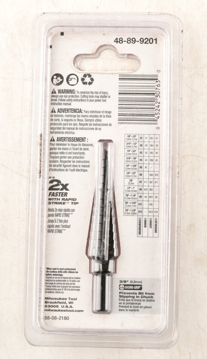 *Milwaukee 48-89-9201 Jam Free 1/8- 1/2 Step Drill Bit #1 For Metal