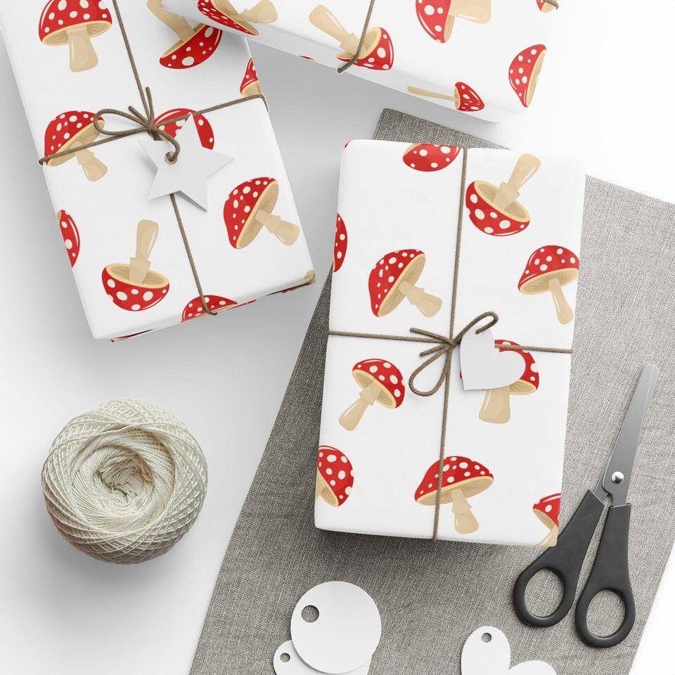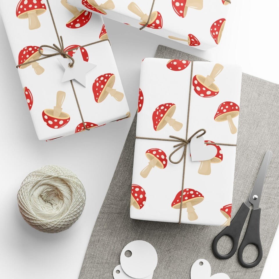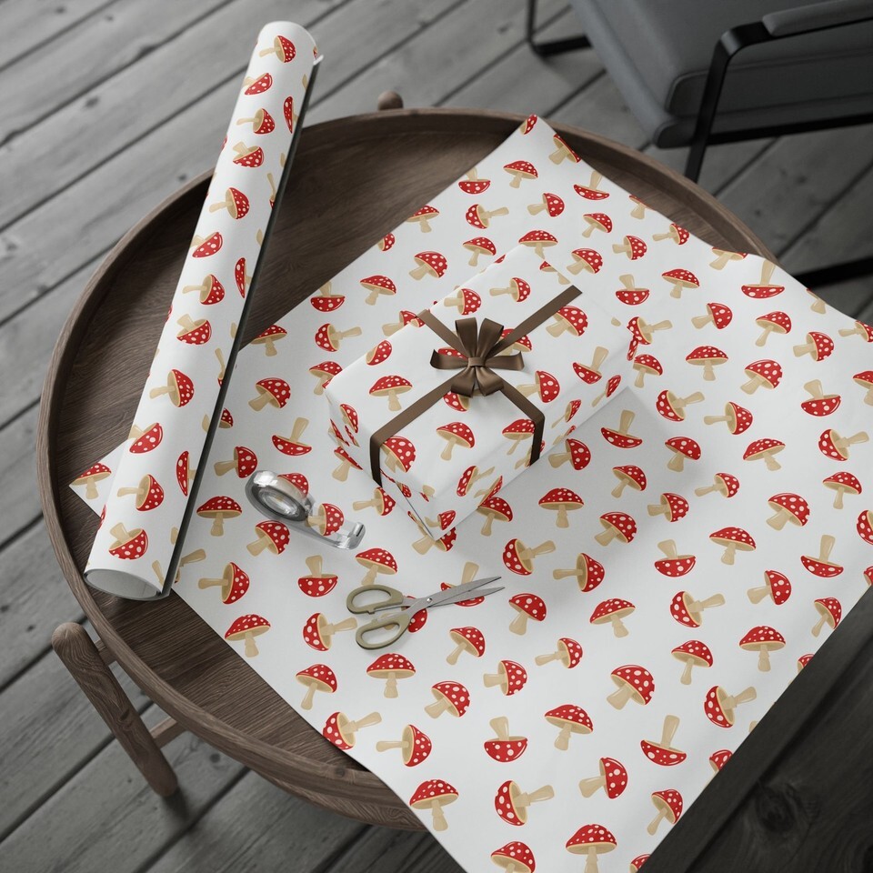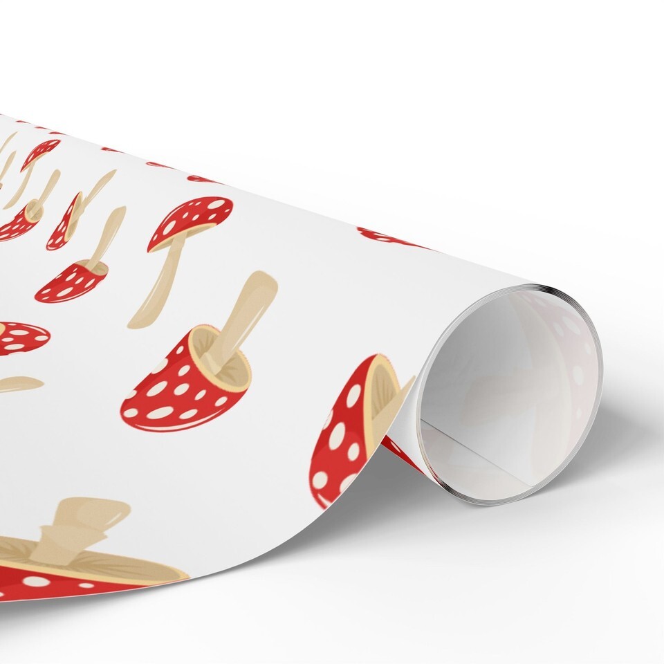 Whimsically Tossed Mushrooms Fungi Premium Eco-Friendly Gift Wrapping Paper