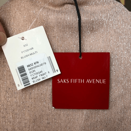NWT Saks 5th Avenue Blush Shimmer Wrap Dress $350 M