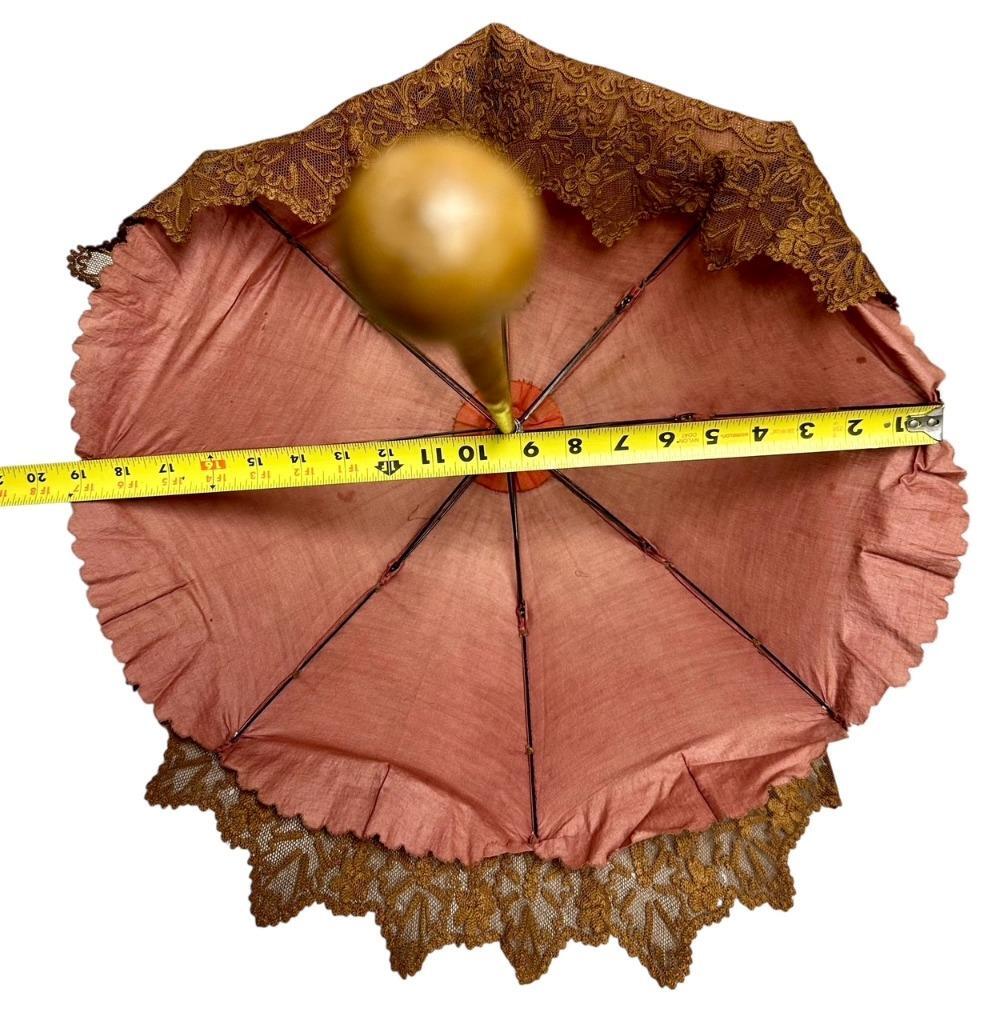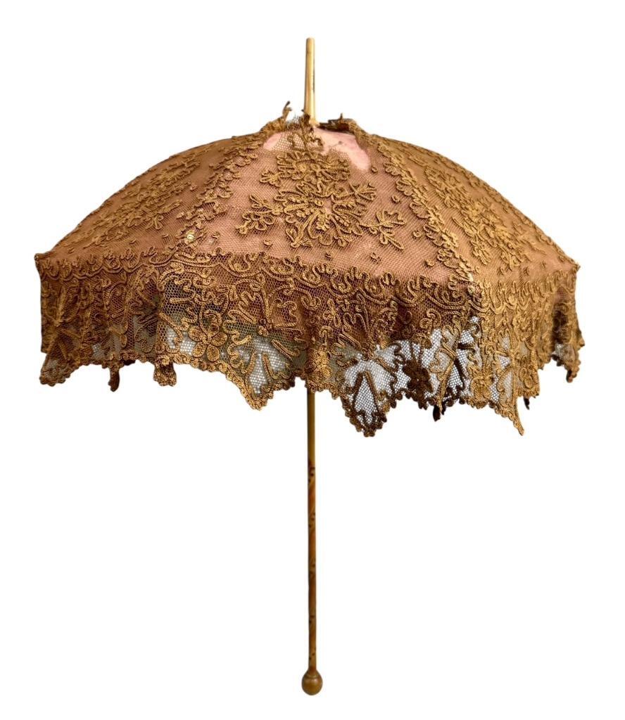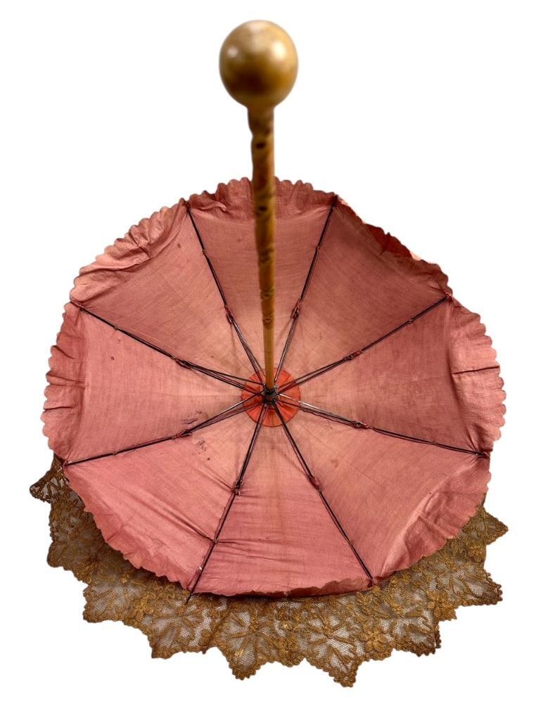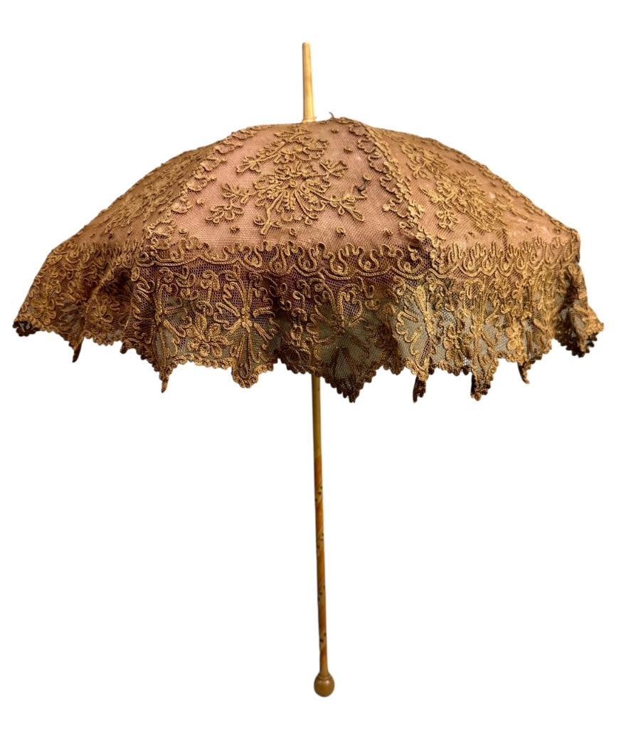 Antique Victorian Ladies Lace Umbrella Parasol Carved Handle