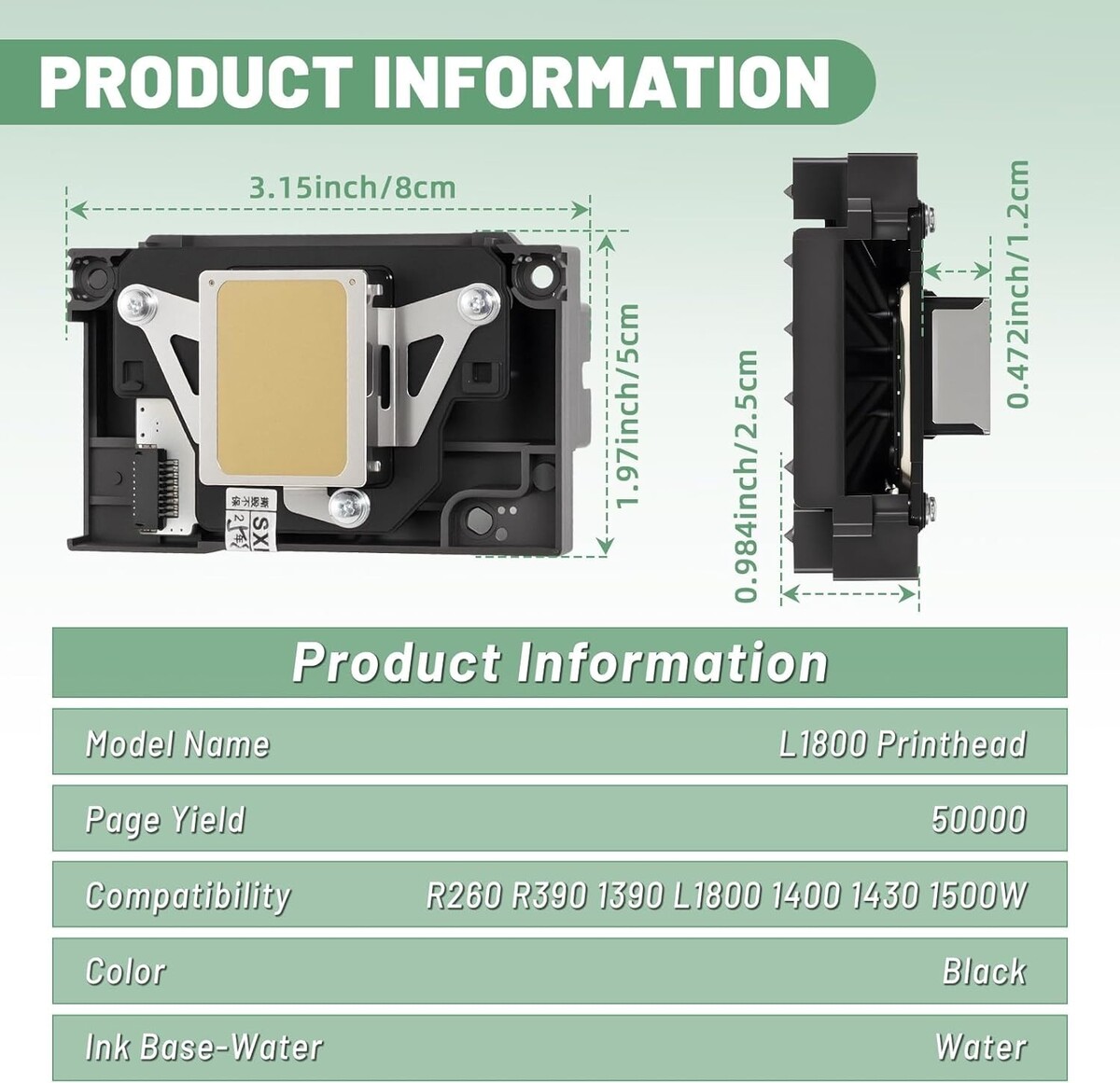 ?Precise? Compatibility?L1800 printhead replacement is compatible with Epson L1800D R260 R270 R390 R1390 R1400 R1430 R1500W DTF prints.