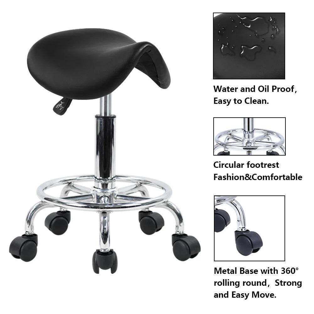 Experience unmatched comfort and style with the Adjustable KKTONER PU Leather Rolling Saddle Stool with Wheels - Comfortable Salon Chair in Black. This innovative stool is designed to enhance your workspace or salon, offering maximum comfort and functionality tailored to your needs.