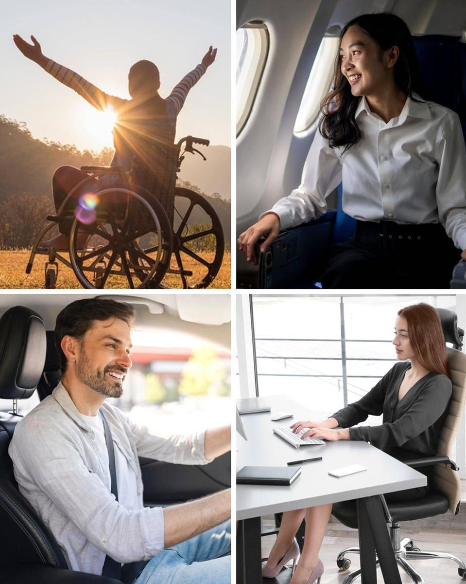 Helps Relieve Back Tailbone Pain Naturally ? This premium lumbar and seat cushion set is expertly designed to reduce back, sciatica, and tailbone pain. Ideal for long hours sitting on office chairs, car, truck, wheelchair, and airplane seats, or at home, it provides ergonomic support and comfort.