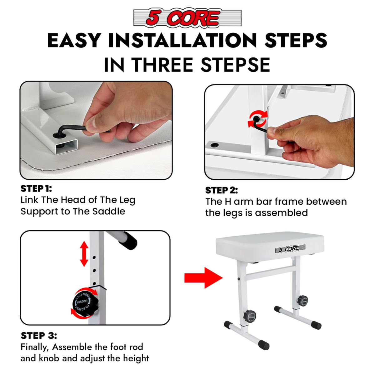 ?Quick and Simple Assembly? Easy setup without special tools?just attach the legs, bracket, and crossbeam, then insert the base and adjust the height to your preference.