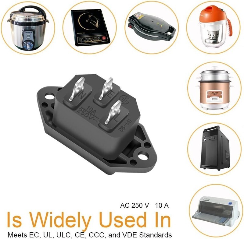 This power socket can be used to repair and replace high power electrical power interface, such as desktop computer, electric water heater, electric kettle, refrigerator, washing machine, electric oven, microwave oven, dishwasher, audio equipment, printer, air conditioner, monitor, TV, etc.
