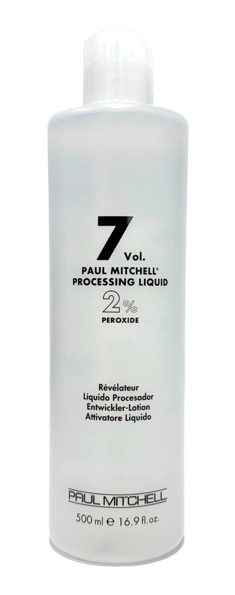 Paul Mitchell 7 Volume Processing Liquid is a low-strength (2% peroxide) professional developer designed for gentle, controlled color processing. It?s specially formulated for use with Paul Mitchell PM Shines and The Demi demi-permanent hair color lines, delivering smooth, even results with minimal lift and reduced damage.