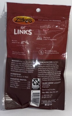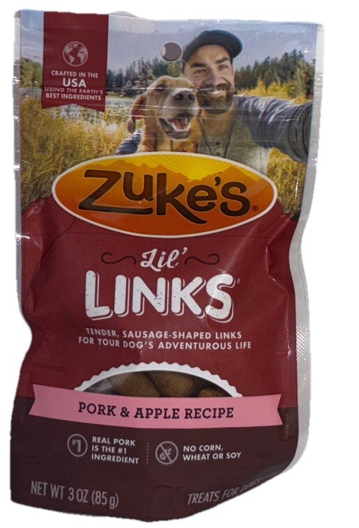 Zuke?s Lil? LINKS Tender Sausage Shaped Links Dog Treats 3oz Pork Apple Recipe-Brand New-SHIPS N 24 HOURS.