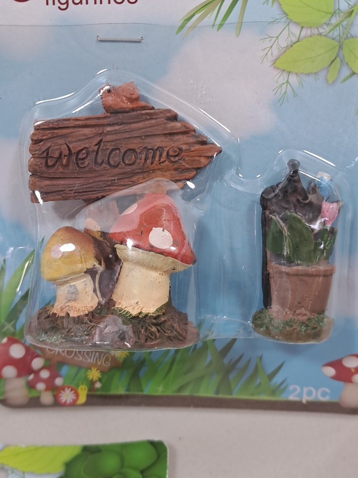3 Pc Set Miniature Fairy Garden Gnomes, Mushrooms, Bridge 2" Tall
