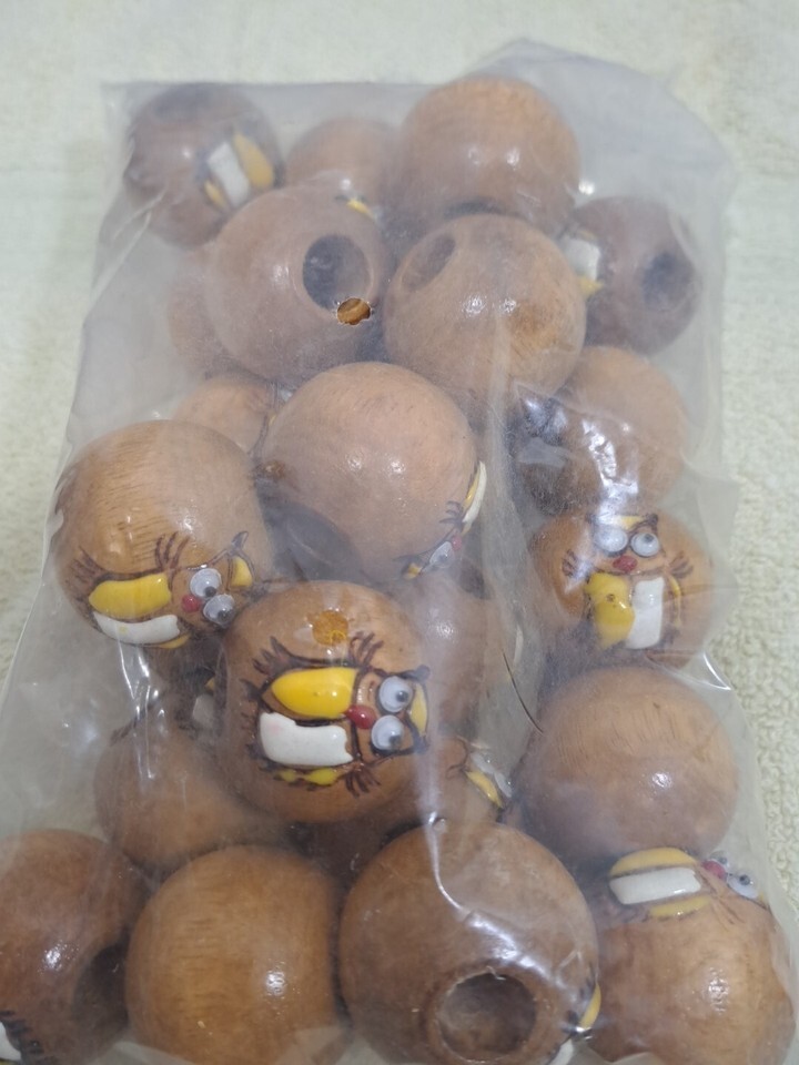 VTG OWL Wood Macrame Beads Bag Of 25pcs 35mm and similar items