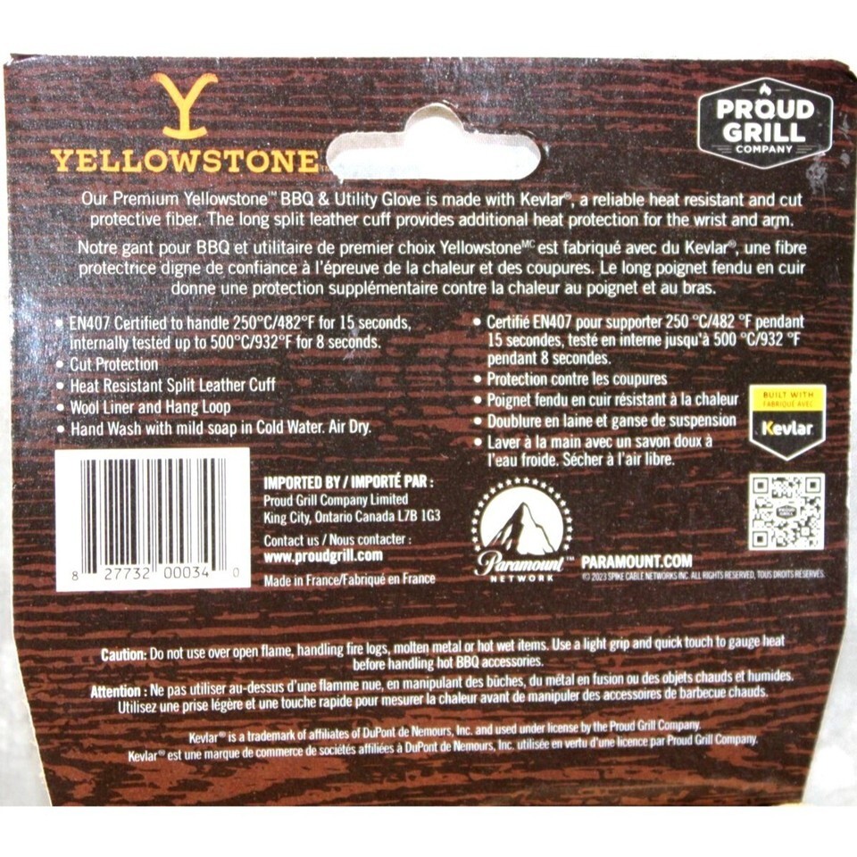 Premium quality glove with Yellowstone? logo on both sides of leather cuff, made in France and built with Kevlar fibers to provide reliable heat and cut protection