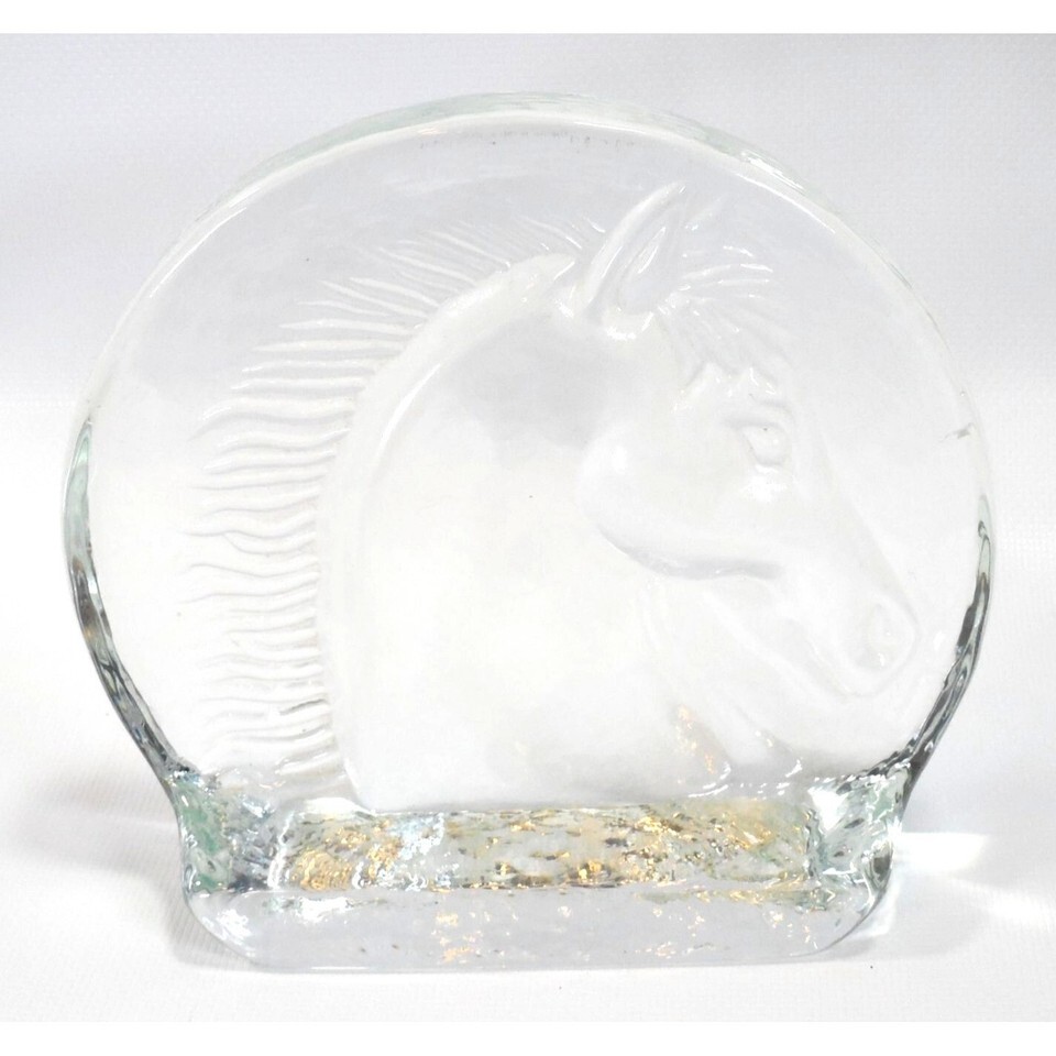This MCM Vintage Clear Depression Glass Horse Head Bookend is a unique piece of art. It's a transparent 6-inch glass horse head, perfect for adding a vintage touch to your decor.