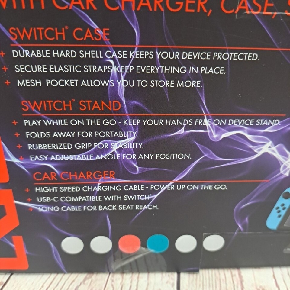 Nintendo Switch Travel Kit With Car Charger Case Stand & Controller Grips