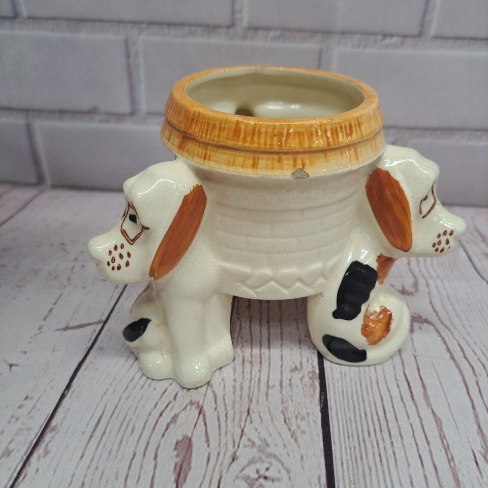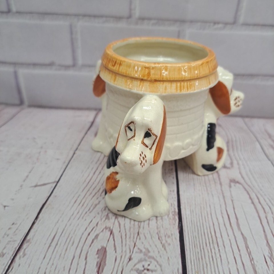 VTG All Round 3 Basset Hound Dog Planter Early Japan Black White Brown *chip*