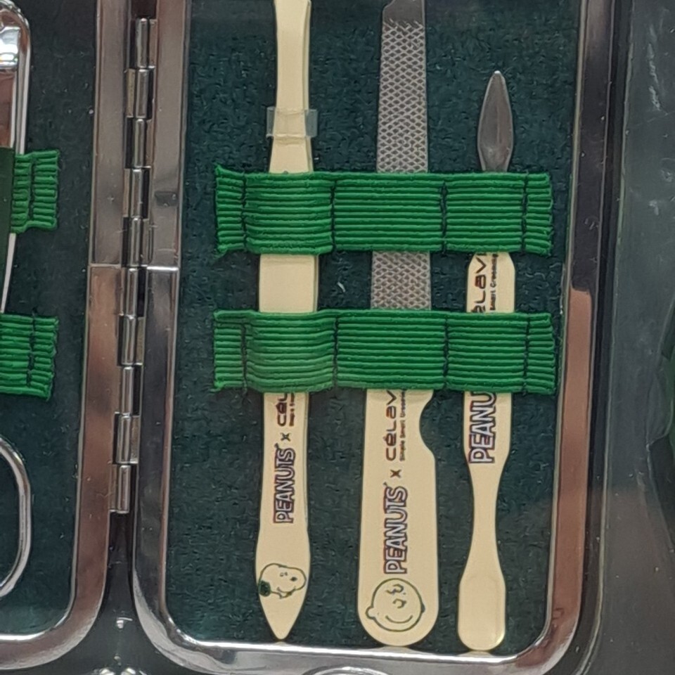 The Celavi Peanuts 7 Piece Grooming Tool Kit is a limited edition set featuring beloved characters from the Peanuts franchise, including Snoopy. Made of mixed materials, this kit includes 2 nail clippers, a cuticle pusher, scissors, tweezers, a nail file, and a travel case, all in a green color scheme. With a Cute Cartoon TV Characters theme, this grooming tool kit is a must-have for Peanuts fans, offering a unique and fun way to maintain their nails while showing off their love for the iconic characters.