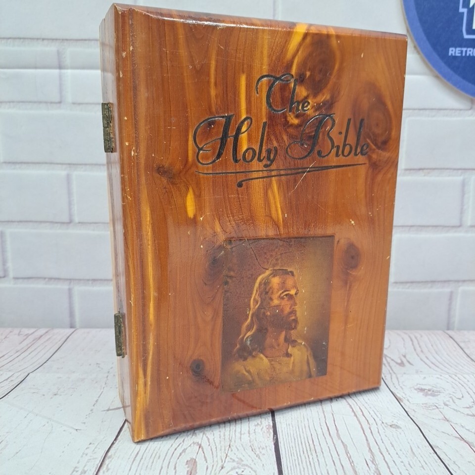 VTG Holy Bible Cedar Box Storage With Jesus and similar items