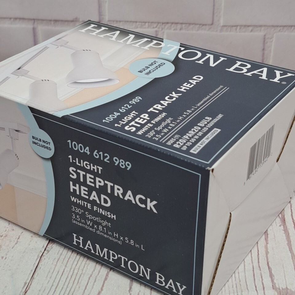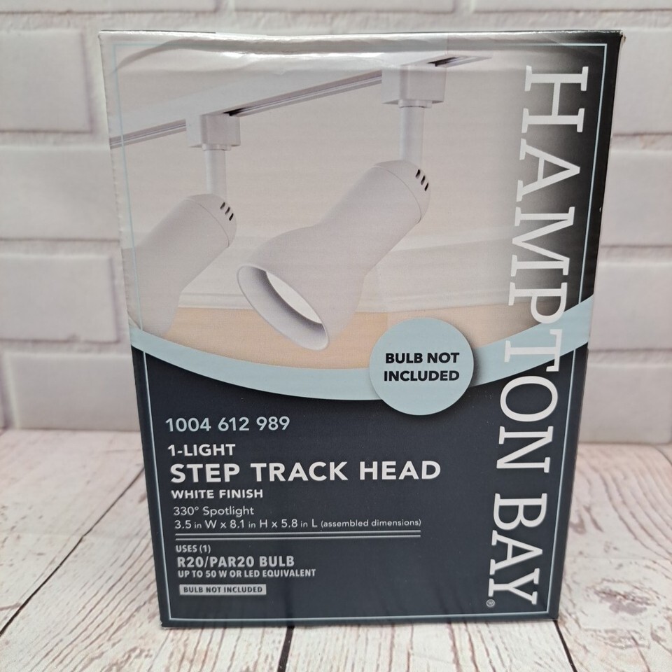 The Hampton Bay 1-Light White Finish Step Track Lighting Head is a modern and adjustable lighting fixture that can be hardwired for indoor use. With a sleek white metal design and a round shade shape, this track lighting head provides a versatile lighting solution for various rooms in your home. The 1-light fixture offers both downward and upward lighting options, making it suitable for casual and new home occasions. With features like dimmability and a 330ยบ adjustable arm, this Hampton Bay track lighting head is a stylish and functional addition to your space.