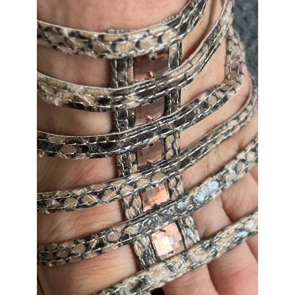 80s Luisa D'orio VTG Strappy Snake Wedge Mule w/ Pink Jewel Feature Italy 7.5